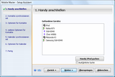 • Verbinden Sie Ihr Smartphone/Handy per (USB- oder seriellem) Kabel, Bluetooth oder per Infrarot und Mobile Master findet Ihr Handy bzw. Smartphone automatisch.
